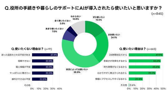 一方で、本調査からは福岡県民の約8割(78.4%)が「役所の手続きや暮らしのサポートにAIが導入されたら使いたい」と回答し、自治体サービスそのものへのAI活用の期待が明らかになりました。