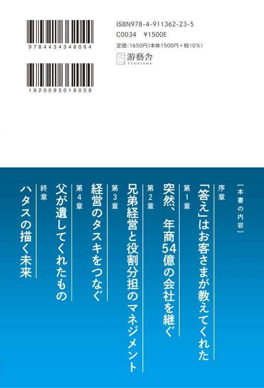 本書では、このような極限状態から企業を立て直した兄弟の取り組みを事実ベースで詳細に記録しています。序章「『答え』はお客さまが教えてくれた」から始まり、第1章「突然、年商54億の会社を継ぐ」、第2章「兄弟経営と役割分担のマネジメント」、第3章「経営のタスキをつなぐ」、第4章「父が遺してくれたもの」、終章「ハタスの描く未来」の全6部構成で、若き経営者たちの苦悩と成長を描いています。