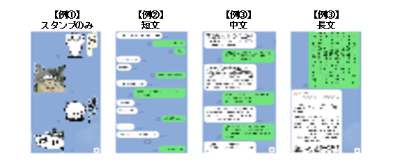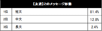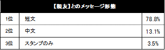 1位:短文(78.8%) 2位:中文(13.1%) 3位:スタンプのみ(3.5%)。
