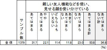 (図表2)「親しい友人機能などを使い、見せる顔を使い分けている」該当割合