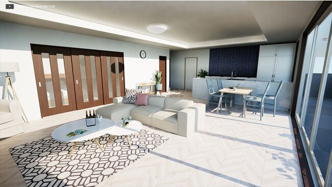 「マンションモード対応」、「3Dアイテムの追加」、3Dエンジンに"UnrealEngine5"を採用し、クラウドサーバーで動かすことでリアルタイムフォトレンダリングを再現する「リアルタイム高画質レンダリング機能」といった新機能を追加。
