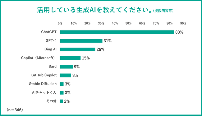 次に、生成AI利用者に、「活用している生成AIサービス」について質問したところ、「ChatGPT」が