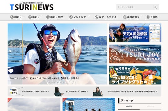Yahoo!やLINEニュース、Smartnewsなど大手ニュースプラットフォームにも記事を配信する釣り業界最大級のWebメディア。沖釣り、堤防釣り、磯、渓流、アユ、バス、ヘラなど<47都道府県×全25ジャンル>を網羅し、実釣レポートや釣り方のテクニック・ノウハウ、釣り場情報、オススメの釣り物・釣法など、ユーザーが実際に釣りに行きたくなるような情報を発信。さらには、魚の生態や自然環境、保全、魚食、漁業といった、釣りに限らない“サカナ”を切り口にしたコンテンツも配信する。