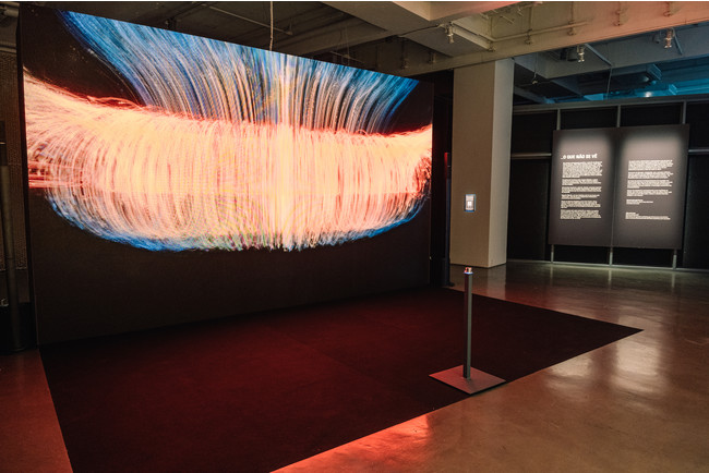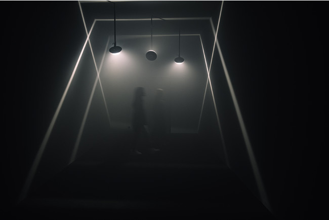 アーティスト坂本洋一と三井化学とのコラボレーションによる作品。スモークで満たされた暗闇と LED に取り付けられた円形の特殊なレンズに光が 通過することにより、何もない場所に光で区切られた空間を創出。拡散光である LED の光 が レンズを通して直線光に変換され、光の壁が浮かび上がり、ゆっくりと動いていきます。普段、私たちが複雑だと思いがちな多くの自然現象から<光>に焦点をあて、レンズによって自然現象とその法則を表現し、万華鏡のような眩い光のエフェクトを生むインスタレーション作品です。
