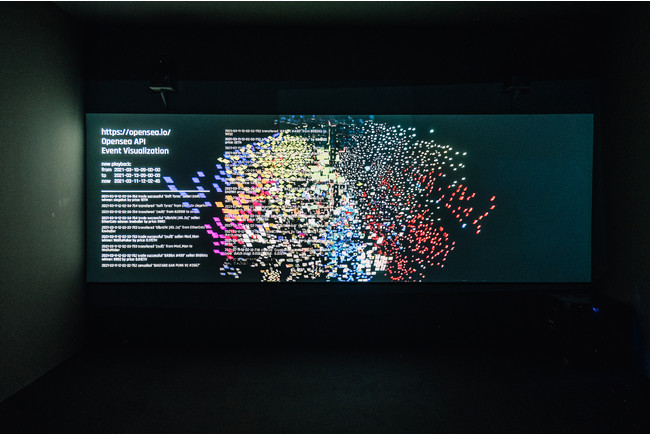 デジタル領域、特にNFT(代替不可能な暗号資産)とCryptoArt(クリプトアート)と呼ばれるデジタルアートにフォーカスを当て、“現代のゴールドラッシュ”における課題や今後のヴィジョンを問いかける作品。経済、テクノロジーとアートの領域を横断するこの作品は、アメリカ人アーティストBeepleとして知られるマイク・ウィンケルマン氏の“エブリーデイズ : 最初の5000日間”が約6935万ドル(約75億円)で落札されたNFTの歴史的瞬間とも言われる2021年3月11日の前後24時間のデータを元に、機械学習技術(Convolutional Neural Network, t-SNE)、データビジュアリゼーションを用いて振り返った映像インスタレーションです。