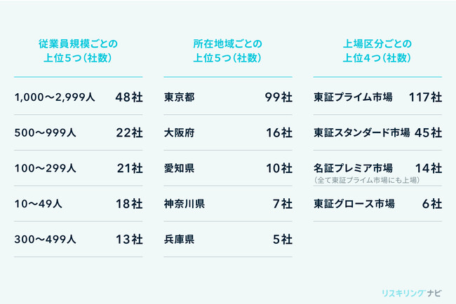 「リスキリング先進地域」は未だない一方、各地方自治体レベルでのリスキリング推進の取り組みなども進んでいるため、この一二年でリスキリング先進地域が生まれる可能性もある。市場区分的にはプライム市場での浸透率が相対的に高い。