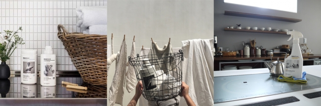 また、ニュージーランドで数々の賞を受賞している有名な兄妹のアーティスト“ Mark & Deborah Smith(マーク & デボラ スミス)”により撮影されたモノクロームの写真を使用したパッケージは、「洗剤は見えないところに隠すもの」というイメージを覆し、キッチンやリビング、サニタリールームに飾っておきたくなるアート性の高いデザインです。どんなインテリアにも馴染みやすく、インスタグラムでは海外の方がエコストアを使っている様々なシーンの素敵な写真が数多く投稿されています。