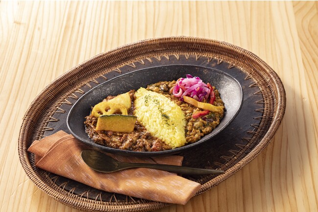お店では食べられないイトーヨーカドー限定のあいがけスパイスカレー。コリアンダー、クミン、カルダモン、カイエンペッパー等を使用したスパイシーなゴボウとしめじの豚キーマ、そしてタイム、フェンネル等を使用した爽やかな香りの大豆ミートキーマを1食で楽しめます。スパイス、和だし、野菜を使用し、お店の特徴を取り入れた本格的なスパイスカレーを再現しながらヘルシーさも感じられる仕立てです。2つのキーマは全く異なる味わいを持ちながらも、混ぜて食べた時にはさらに美味しくなるようバランスを調整しました。