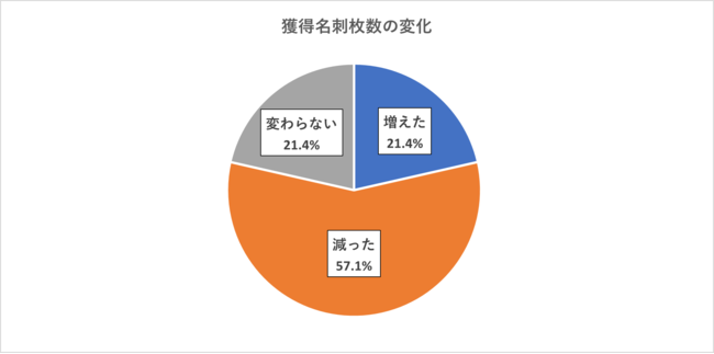 展示会1回あたりの名刺獲得数、コロナ禍以前と比較し「減った」は57%