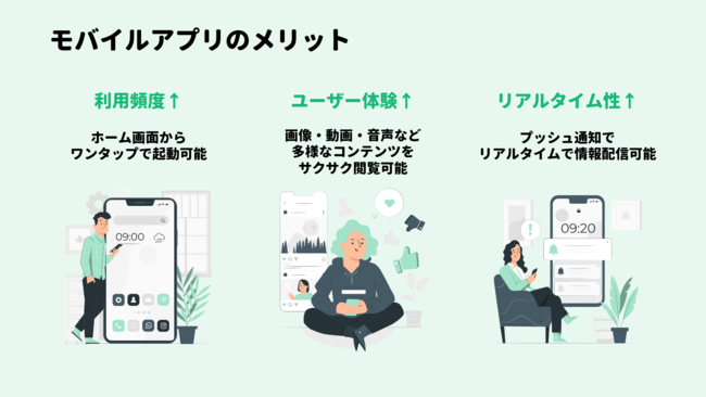 PWA(Progressive Web Apps)としてモバイルアプリを公開可能です。またビルド申請をいただくことで、ネイティブアプリ(iOS/Android)としても公開可能になります。