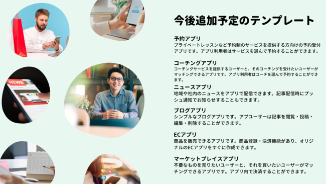 今後追加予定のアプリテンプレート