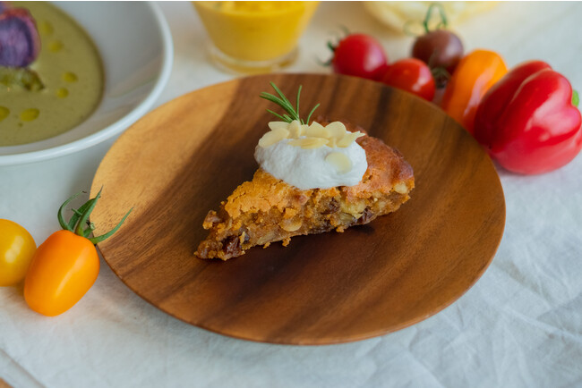 石垣島産の島豆腐と旬の島野菜をたっぷりと詰めこんだ、ヘルシーなキッシュ。トマトソースの酸味と合わせてお楽しみください。