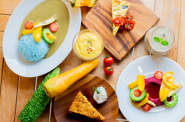 THIRD石垣島ではヴィーガンのインバウンド旅行客や健康的な体づくりをおこなう宿泊者様の多様な食のニーズに対応すべく、野菜ソムリエ監修のもと、地産地消を目指したヴィーガンメニューを開発いたしました。ホテル館内でのお食事、アルコールを含むドリンクなどがご宿泊費用に含まれるオールインクルーシブプランでは石垣島の島野菜や植物をふんだんに使い、免疫力アップや美白効果も見込める栄養価の高い6種類のヴィーガンメニューをお楽しみいただけます。単品でのご利用も可能です。