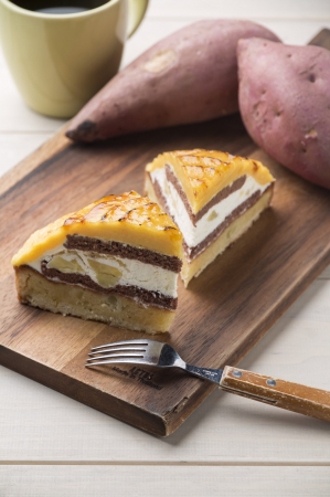 焼き芋にした「紅はるか」のほくほくした食感とチーズの爽やかな風味を感じるしっとりしたチーズケーキ。