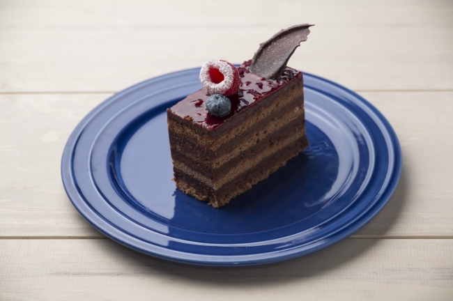濃厚なショコラクリームと酸味と甘みのバランスが絶妙なフランボワーズが何層にも重なる定番のチョコレートケーキ