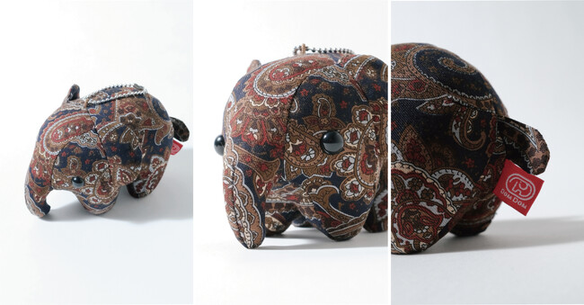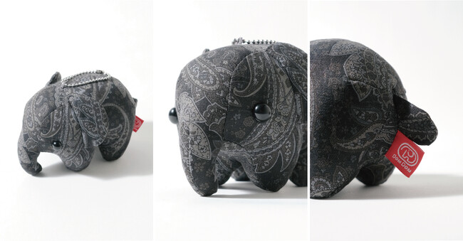 [WEWILL]のオリジナルペイズリー柄を使用した、ドムドムハンバーガーのアイコン「どむぞうくん」ボール チェーンぬいぐるみ。こちらはブラック色です。