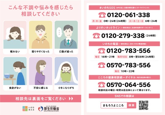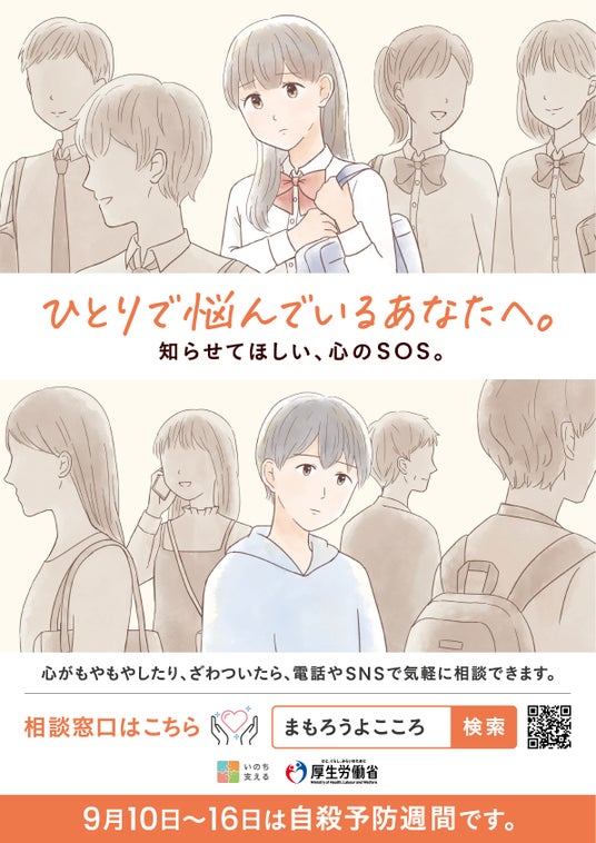 厚生労働省(所在:東京都千代田区)は、毎年9月10日から16日の「自殺予防週間」において、関係府省庁等と連携し自殺防止に向けた集中的な啓発活動を実施しています。