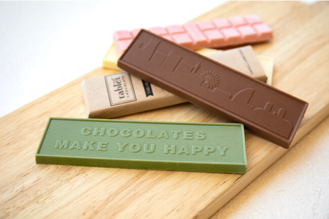 複数のデザインと味を組み合わせた、オリジナルの板チョコレート2枚分をスタッフが成形し冷却。正規品と同様のラッピング体験を行いお持ち帰りいただけます。