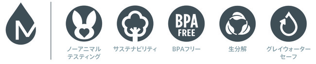モデーアは、クリーンな成分にこだわり、安全・安心に心を配った製品を提案するアメリカ発のライフスタイルブランドです。製品パッケージにはその思いを表現したアイコンが表示されています。原料の調達からサステナビリティまで考慮したモデーアの厳格な開発基準によって、皆さまと地球にとってより良い製品がつくり出されています。