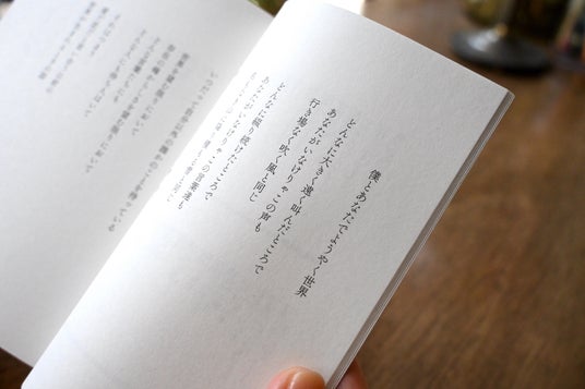 小さなバックやズボンのポッケにも入る文庫本サイズ。旅のお供にも。 -「僕とあなたでようやく世界」