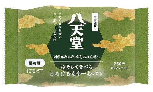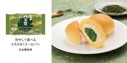 試作に試作を重ね進化させた、2024年の「冷やして食べるとろけるくりーむパン 出雲抹茶」。濃厚な抹茶クリームと八天堂の軽くてくちどけの良いカスタードクリームの2層が織りなす、まろやかな甘みとコク深い上品な苦味をぜひご堪能ください。