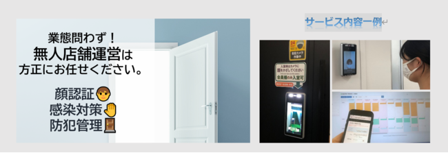 【無人店舗ソリューション】は、AI(人工知能)・ITを活用した方正の省力化店舗運営支援サービスです。非対面接客・働き方改革・人手不足解消…新時代におけるさまざまな課題を抱える皆さま、無人店舗運営という選択はいかがですか。顔認証自動ドア解錠サービス・web会員予約サービス・監視サービス・無人決済サービスなどのソリューションで、新時代の無人店舗運営を実現します。
