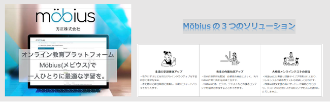 【Möbius(メビウス)】は、強力な数理計算エンジンを備えており、授業作成、練習問題作成、オンラインテストの実施、自動採点、成績管理までできる総合的な教育プラットフォームです。世界各国の学校ご導入いただき、高い学習効果を上げています。