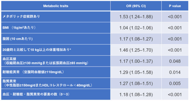 血圧、脂質、耐糖能の異常、20歳からの10kg以上の体重増加や現在の肥満がうつ病の発症リスクと関連