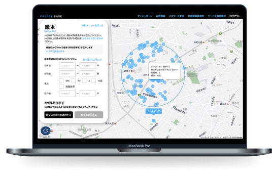 本サービスは、当面の間、東京23区内の物件を対象に、Propreの提供する不動産登記情報基本データベースサービス「謄本plus(プラス)」の有料プランをご契約中のお客様に限定して提供いたします。
