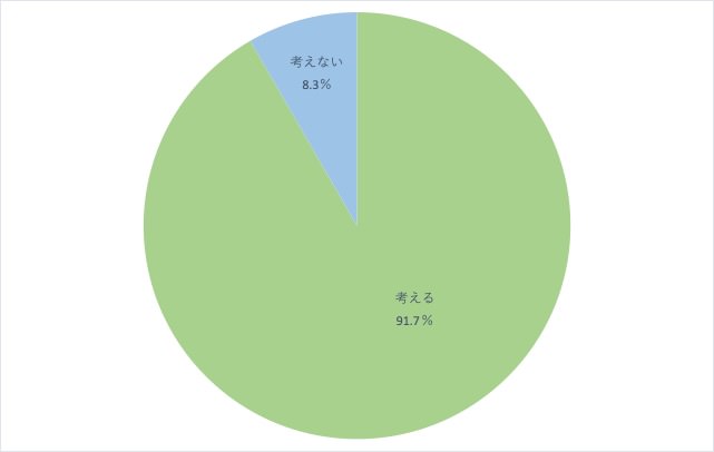 「考える 91.7%(275人)」「考えない 8.3%(25人)」という結果になりました。
