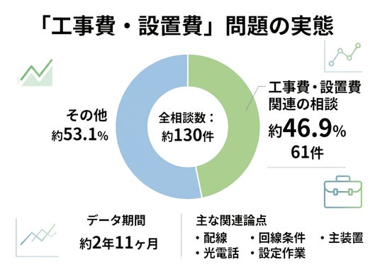 - 工事費関連の相談が61件(約46.9%)と約半数を占めた