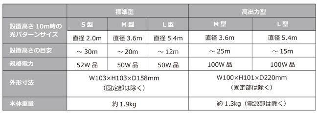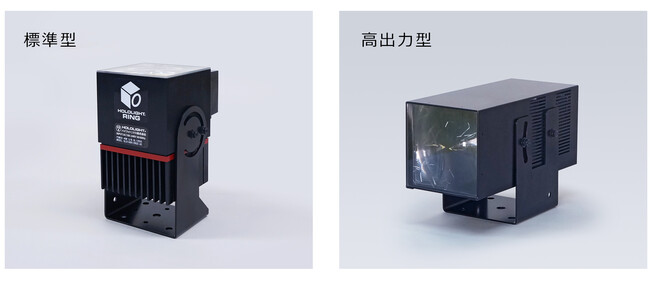 点円環中央点型光パターン形成LED照明「ホロライト・ドットリング・センター」は、遠方に視認性の高い複数の点で円環状の光と、その中央部に点状の光を形成するLED照明です。光パターンの大きさはS型(小)、M型(中)、L型(大)の3種類、照明色は赤色、緑色、青色の3種類をご用意しました。工場内の天井クレーン吊荷周囲の立入禁止ゾーンを点円環状の光で可視化する安全対策とクレーン下部の位置決めなどの作業支援の機能を一体化しました。点円環状の光と中央点の光は異なる色に選択することも可能です。また、従来製品の「ホロライト・ドットリング」M型とL型は、従来比1.5~2倍に照度を高めた高出力型を製品化し、15mを超える高い揚程のクレーンに対しても十分な視認性が得られます。さらに、オプション機能として、点円環光の周囲に方角を示すドット光を追加可能です。以上、クレーン吊荷下の退避距離を示す安全対策、クレーン下部の位置決め作業支援、方角を示す光の追加に関して、特許出願済みとなります。本製品は、鉄鋼、自動車、ゴム、食品、製紙などの製造工場や物流倉庫、さらには土木建設現場における安全対策用に、国内のみならず東南アジア、北米、欧州などの海外市場に向けても提供します。