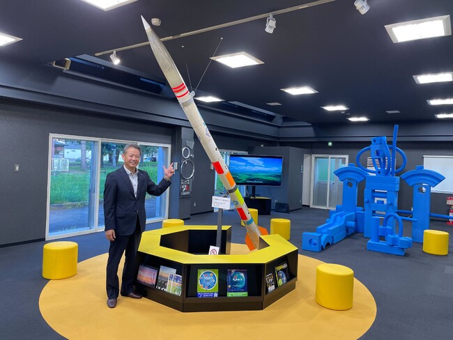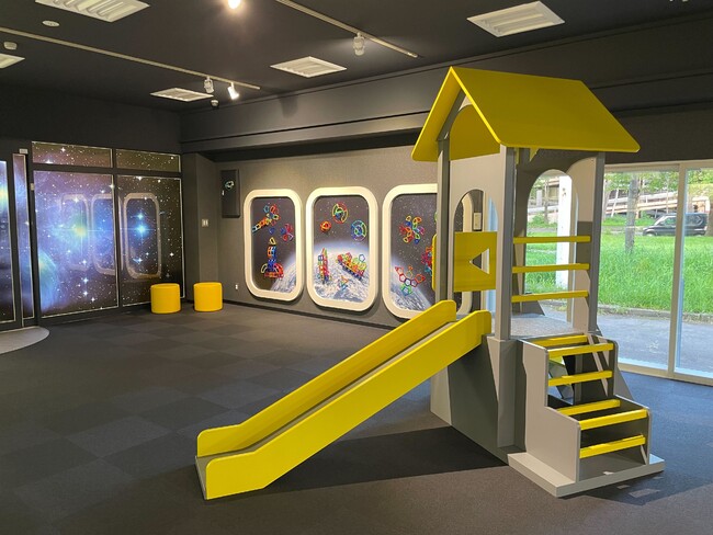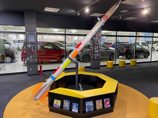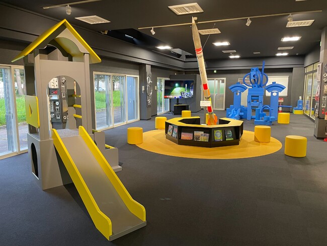 「ロケットひろば」(広さ約110平方メートル)は北海道十勝の農業や観光に続く次の産業となりうる宇宙産業を応援したいと、帯広日産社がドーム店(北海道帯広市西7条南20丁目1番地)のキッズコーナーを改装して新設。展示には、インターステラテクノロジズと北海道大樹町、宇宙港「北海道スペースポート」を推進するSPACE COTAN(本社:北海道広尾郡大樹町、代表取締役社長兼CEO:小田切義憲)が協力しました。中央には、インターステラテクノロジズの前身となる民間組織「なつのロケット団」時代に打ち上げたロケット「ゆきあかり」(全長3.8m、2011年12月打上げ)の実機を展示いただいているほか、設計から製造まですべてを自社で一気通貫で手がけるインターステラテクノロジズの技術を感じられるロケット部品も壁に掲示されています。また、動画や絵本、遊具などを通じて、宇宙産業に身近に触れられる空間となっています。