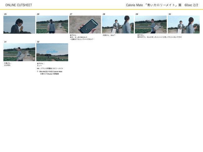 ■新TVCM『青いカロリーメイト』篇 60秒 カット表