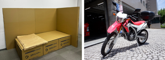 災害時の避難所で使用されるトイレと段ボールベッドで、