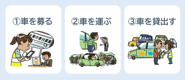 2011年4月、東日本大震災後の宮城県石巻市で設立された非営利団体。自動車の寄付を募り、仮設住宅の住民で車を共同利用するカーシェアリングを開始。今までに延べ700台超の車の寄付が集まっており、その車を活用し、コミュニティ・カーシェアリングの普及促進や災害時の車の無償貸出支援、生活困窮者やNPOへの車の貸出支援などを行っている。