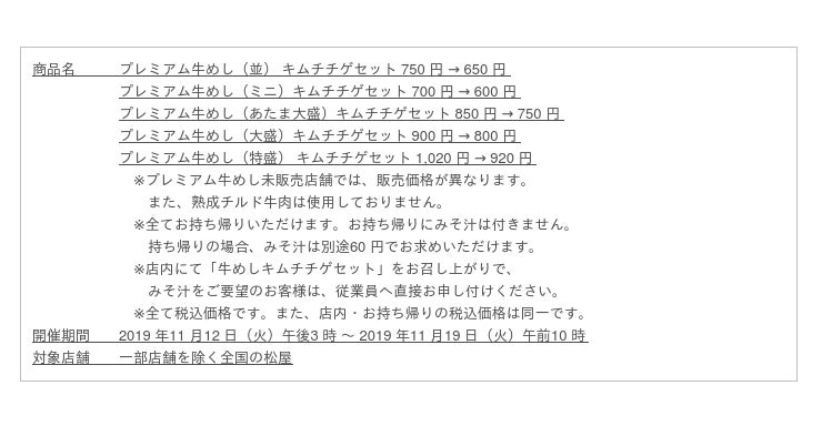 この「牛めしキムチチゲセット100 円引き」は11 月19 日(火)午前10 時まで、この機会に是非お試しください。