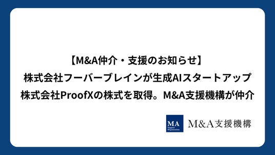 M&A支援機構(運営:株式会社プレックス、所在地:東京都中央区、代表取締役:黒崎俊)は、このたび、株式会社フーバーブレインによる株式会社ProofXのM&Aに係る仲介業務を担当し、本件が成約に至りましたことをお知らせいたします。