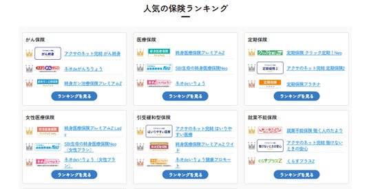 ※ランキングは各保険商品の優劣や推奨を示すものではなく、特定期間の申込件数、資料請求件数、及びアクセス数に基づいて作成したものです。