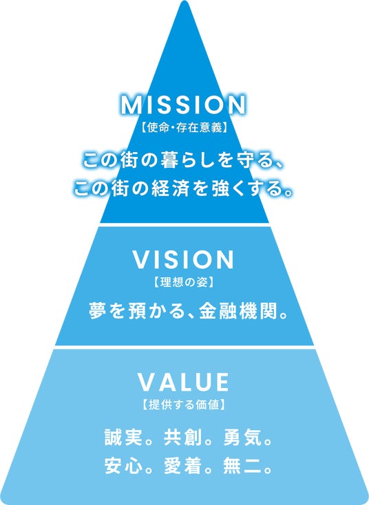 そうしたことを踏まえて、私たちは、これからの豊橋、東三河・湖西地域でどういう存在であるべきなのかを考え、基本方針のもと、「豊橋信用金庫10年ビジョン(以下「10年ビジョン」といいます。)」を策定しました。