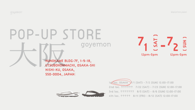 「日本の伝統×最新技術」をコンセプトに商品を創りだすことで、現代の生活にフィットした伝統を身近に感じられる商品を取り扱うブランドgoyemon(ごゑもん)を展開するNEWBASIC inc.(東京都渋谷区/代表取締役 大西藍)は、初の関西ポップアップストアを大阪・本町にて2023年7月1日(土)7月2日(日)の2日間で開催。