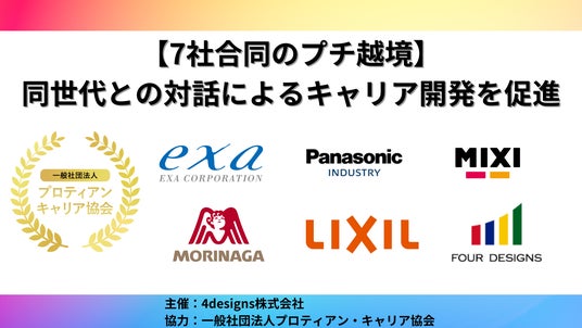 人的資本経営コンサルティング、キャリア対話型組織開発支援サービスに取り組む4designs株式会社(一般社団法人プロティアン・キャリア協会唯一の認定企業、東京都渋谷区、代表取締役:有山徹、以下「当社」)は、このたび一般社団法人プロティアン・キャリア協会(東京都新宿区、代表理事:田中研之輔・有山徹、以下「プロティアン・キャリア協会」)の協力により、2024年3月に株式会社エクサ、パナソニック インダストリー株式会社、株式会社MIXI、森永製菓株式会社、株式会社 LIXIL、他2社の合計7社と合同でプチ越境プログラムを実施いたしました。