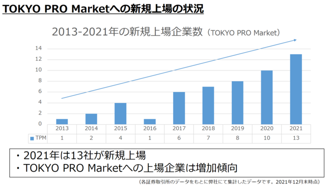 実際に、TPMの上場社数も年々増加傾向にあり、2020年では10社、2021年では13社が上場しております。また、TPM上場企業の半数以上は東京都以外に本社所在地を置く企業となっております。