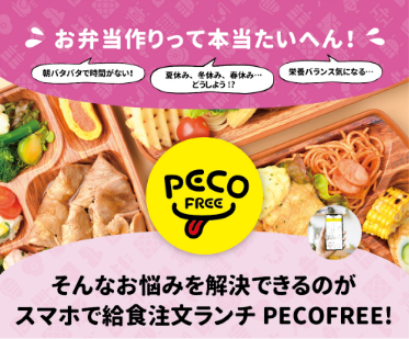 株式会社テノ.ホールディングスの連結子会社である株式会社テノ.サポートは、2022年8月より福岡県下4つの市町(春日市、那珂川市、太宰府市、新宮町)の48の学童保育所にて、株式会社PECOFREE(本社:福岡県福岡市、代表取締役:川浪 達雄)が提供する、お弁当をスマートフォンで予約注文できるサービス【栄養士監修】お弁当サービス「PECOFREE(ペコフリー)」を導入いたしました。