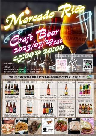玉島信用金庫(岡山県倉敷市/理事長宅和博彦)は、2023/7/29(土)15:00~20:00、あちてらす倉敷オープンスペースにてMercadoRico(たましん主催のマルシェ)を開催します。今回のテーマは、「クラフトビール」。信用金庫の絆で集まった全国のクラフトビールと当金庫お取引先のビールにあうおつまみをお楽しみください。