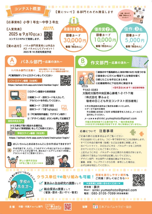 卒園・卒業アルバム制作会社 夢ふぉと(本社:大阪府大阪市、代表取締役:林さゆり)は、2025年6月1日 全国の小学生から中学生に向け「第4回敬老の日こども作文&パネルコンテスト」の募集を開始しました。