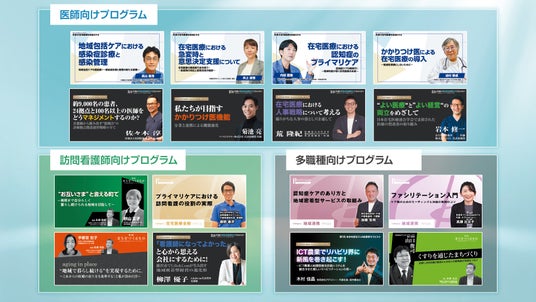 本動画サービスでは、在宅医療に携わる各専門職のトップランナーによるセミナーやトークライブ等を続々開催しています。 常に新鮮な情報に出会えるだけでなく、明日からすぐに活かせるノウハウに触れ、自らの医療知識やスキルをアップデートし続けることができます。 会員数3,000人突破記念として、今後は全てのプログラムの一部を無料でご覧いただけるようになりました。