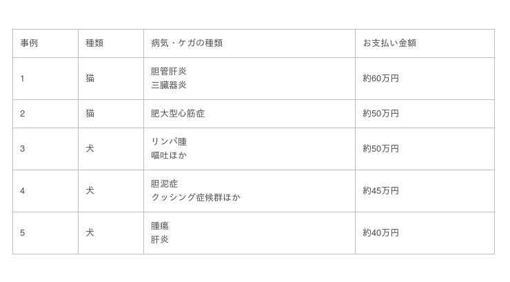 ※上記の数値は、PS保険加入者さまから請求されたものであり、ペットメディカルサポートが補償する範囲を示すものではありません。また、平均や水準を示すものでもありません。