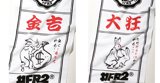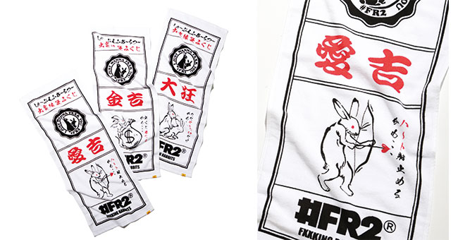 2014年の創設以来、SNSを中心に爆発的な人気を呼んでいる東京発のファッションブランド「#FR2(Fxxking Rabbits)」。「#FR2」は、”ライカを手にしたウサギのカメラマン「#FR2」という設定の上「カメラマンが着る服」というコンセプトでブランド展開している。交尾中のウサギがアイコンとなっており、常に過激なメッセージや斬新な発信・話題を提供し幅広いアイテムの展開で日本にとどまることなく、世界中でファンベースを築いてきた。2023年の干支「兎年」にちなみ、兎がデザインされた「愛吉」「金吉」「大狂」の3種類の「出雲縁欲みくじタオル」を販売いたします。