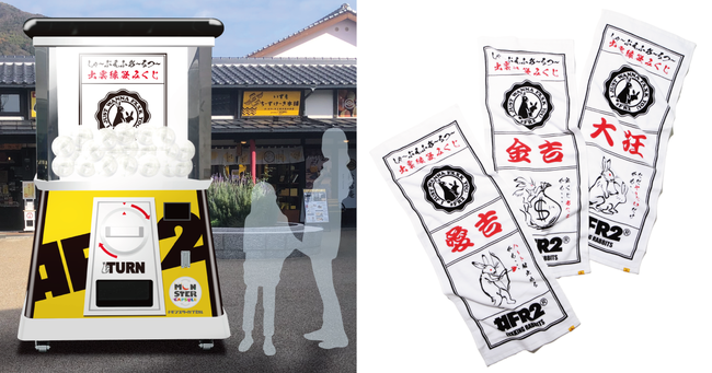 高さ2.4メートルの巨大ガチャ「モンスターカプセル」の開発・運営を行うスマイルタンク株式会社(本社:東京都文京区、代表取締役:上村 耕司、以下「スマイルタンク」)は、2022年12月31日(土)午後22時から初詣期間に、縁結び・福の神として名高い「出雲大社」へ続く表参道・神門通りの出雲大社正門前商店街 出雲しんもん横丁に『高さ2.4メートル巨大ガチャ』を設置し、株式会社せーの(本社:東京都渋谷区猿楽町長:石川 涼)が展開する「エフアールツー(#FR2)」がオリジナルデザインした「出雲縁欲みくじタオル」を販売する。